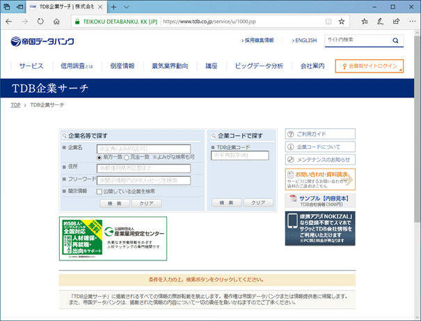 帝国データバンクが蓄積してきた日本最大級の上場・非上場の企業情報データベースに収録されている企業を企業名から検索できます。すでに当社も収録され、TDB企業コードが付与されていました。