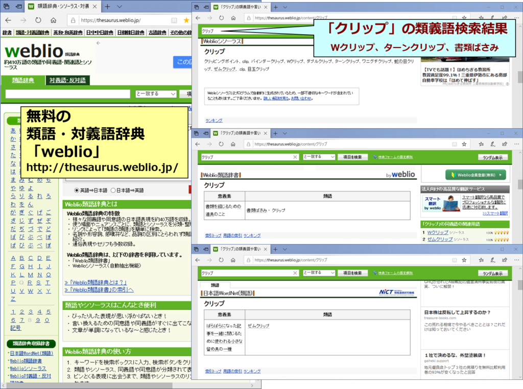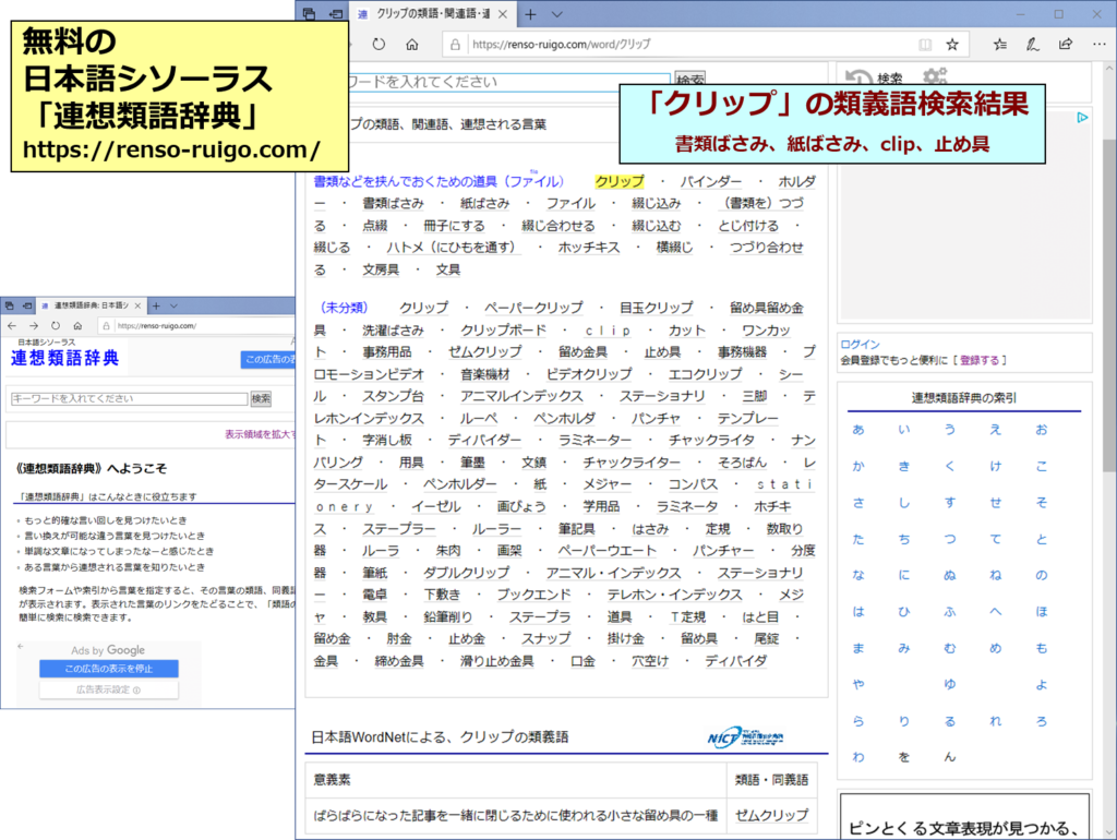 今回はインターネットを通じて無料で使えるシソーラスを紹介します。