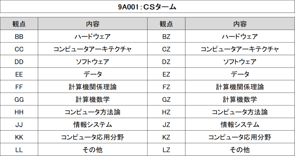 J-PlatPatにおいては、2018年3月の大幅改変の時に、「特許・実用新案テキスト検索」、「特許・実用新案分類検索」および、「コンピュータソフトウェアデータベース(CSDB)検索」の統合が行われたので、現在では「特許・実用新案検索」のページから検索を行うことができます。また、「特許・実用新案分類照会(PMGS)」のページから『9A001』のFタームを照会することで、Fタームと同様に体系づけされた分類コードの詳細を確認することができます。図10には、9A001で展開されている観点項目を示しました。