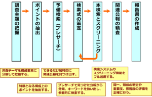 それでは、それぞれの特許調査の概要について1つずつ上から順番に説明します。