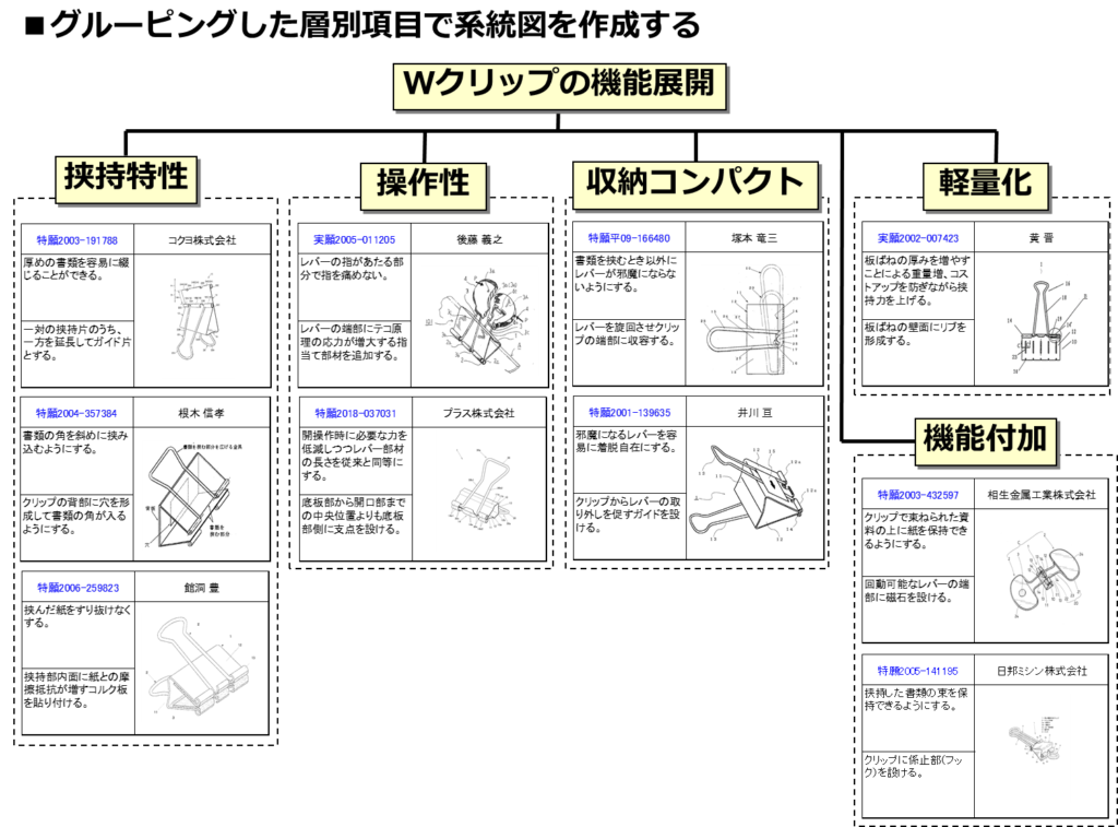 図7 ダブルクリップの技術系統分布図