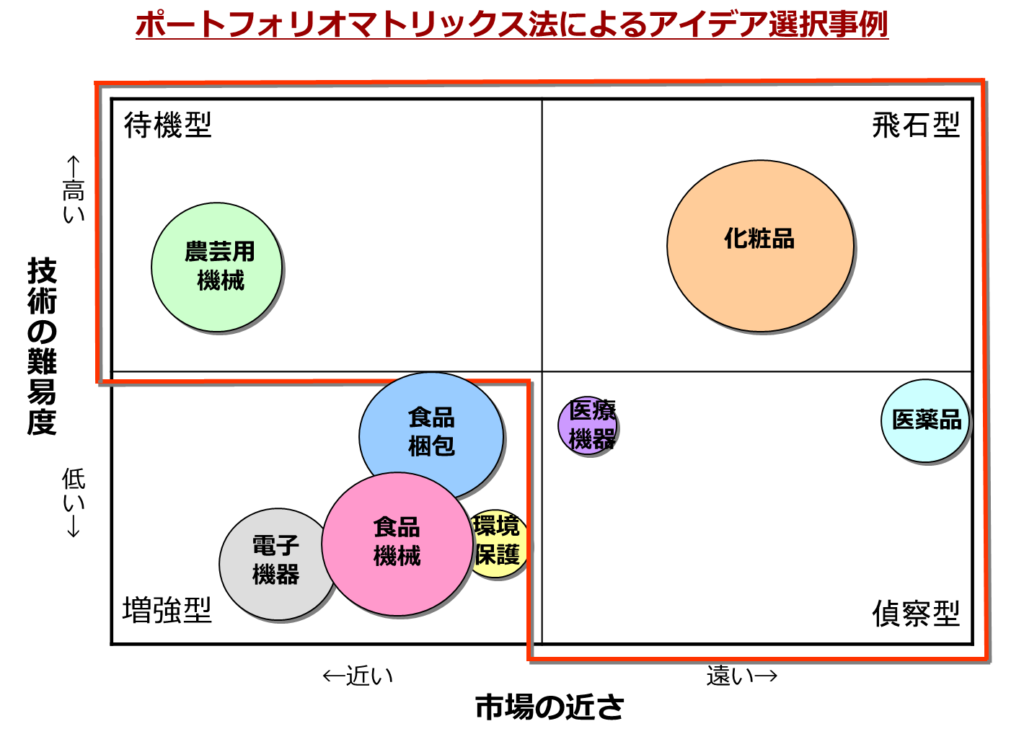 図11 ポートフォリオマトリックス法によるアイデア選択事例